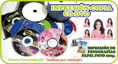 | Realizamos la impresión y copia de CDs y DVDs con sus diseños directamente sobre los discos con alta calidad fotográfica. La grabación e impresión de CDs y DVDs tiene muchos usos en el mercado. Se utiliza principalmente para presentaciones institucionales, publicidad, marketing corporativo, catálogos, películas, libros electrónicos, música, etc. |